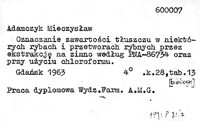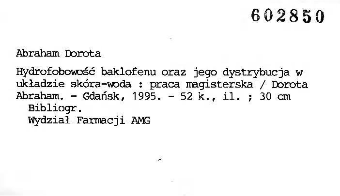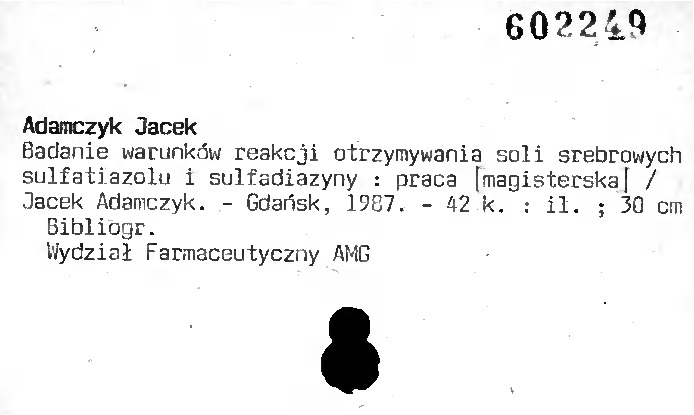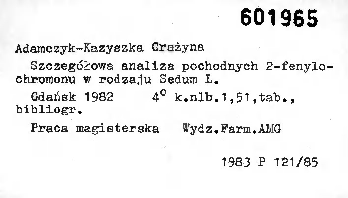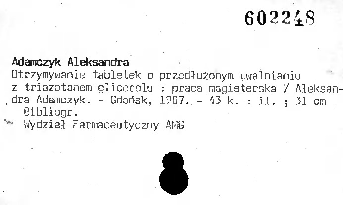 Uwaga! Katalog obejmuje prace magisterskie powstałe na Wydziale Farmaceutycznym; można z nich skorzystać tylko na miejscu w Czytelni Głównej.