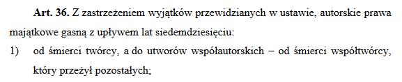 Jednakże autorskie prawa majątkowe, dopóki służą twórcy, dopóty nie podlegają egzekucji. Natomiast po śmierci twórcy: |