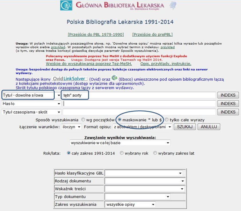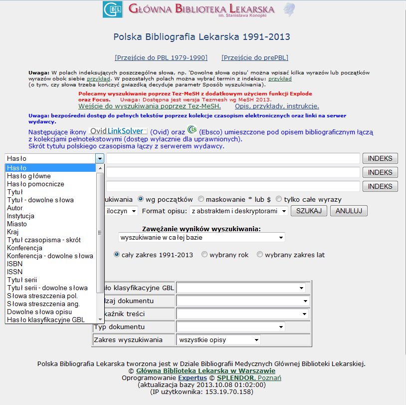 Wyszukiwanie w bazie PBL - informacje podstawowe